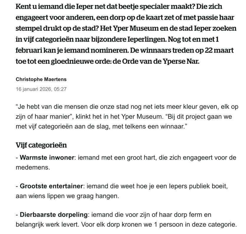 We willen enkele individuen, met een Iepers trekje, in de bloemetjes zetten. Wie verdient volgens jou de eer?