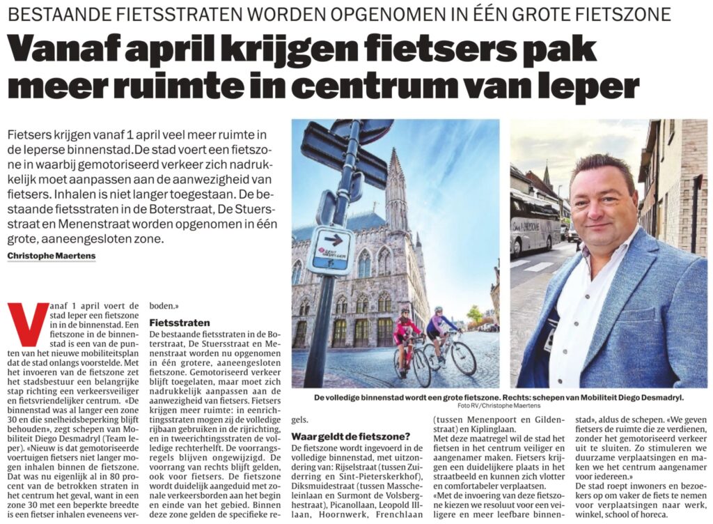 Home / verkeersveiligheid & mobiliteit / Meer ruimte voor fietsers in het centrum van Ieper