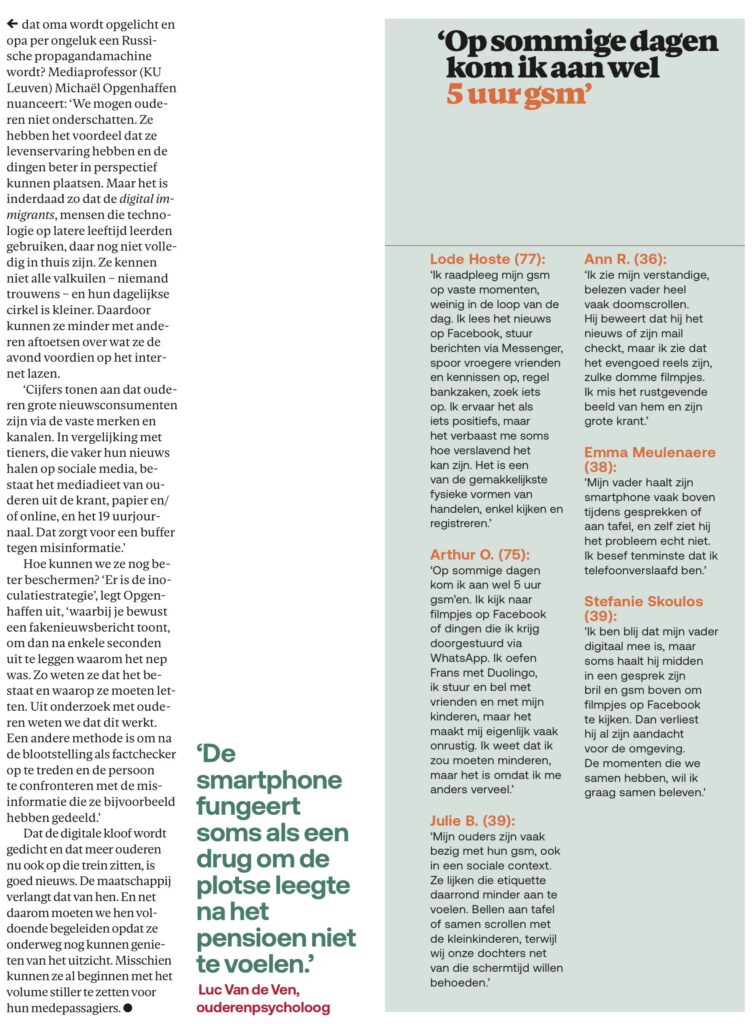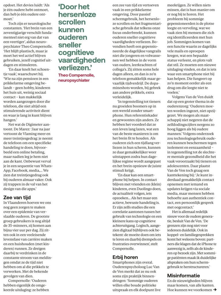 Home / gezondheid / Opa zit weer te scrollengezondheidOpa zit weer te scrollen Geen reacties17/03/2026 Met enige vertraging hebben ook de zestigplussers de smartphone of de tablet ontdekt Share Post Share Previous ArticleVier onze gerestaureerde LakenhalleNext ArticleWaarom we de ander juist nu nodig hebbenwebmasterSign Up For Daily NewsletterStay updated with our weekly newsletter. Subscribe now to never miss an update![mc4wp_form] Related Posts Neos lanceert podcast ‘Positief ouder worden’ 13/04/2026 23ste Sportdag voor 50-plussers 10/04/2026 Dementie voorkomen of vertragen? 07/04/2026 Laat een reactie achter Reactie annulerenJe e-mailadres zal niet getoond worden. Vereiste velden zijn gemarkeerd met *ReactieNaam * E-mail * Website Mijn naam, e-mailadres en website opslaan in deze browser voor de volgende keer wanneer ik een reactie plaats. Δ