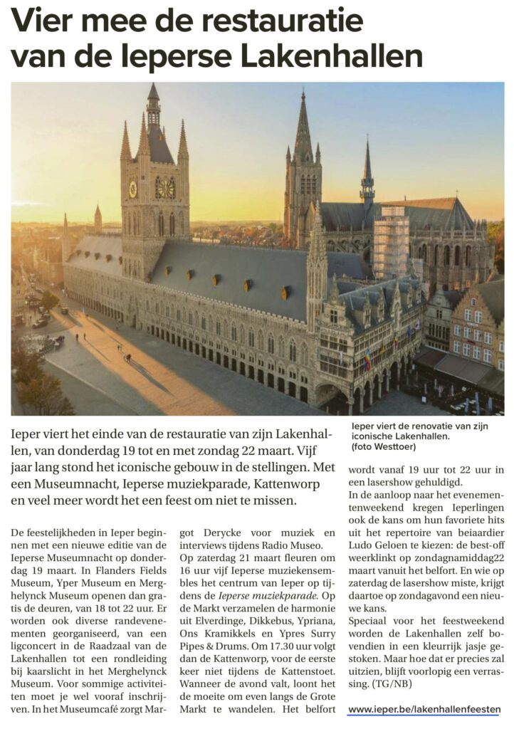 Ieper viert het einde van de restauratie van zijn Lakenhalle, van donderdag 19 t.e.m. zondag 22 maart. Doen onze senioren ook mee?